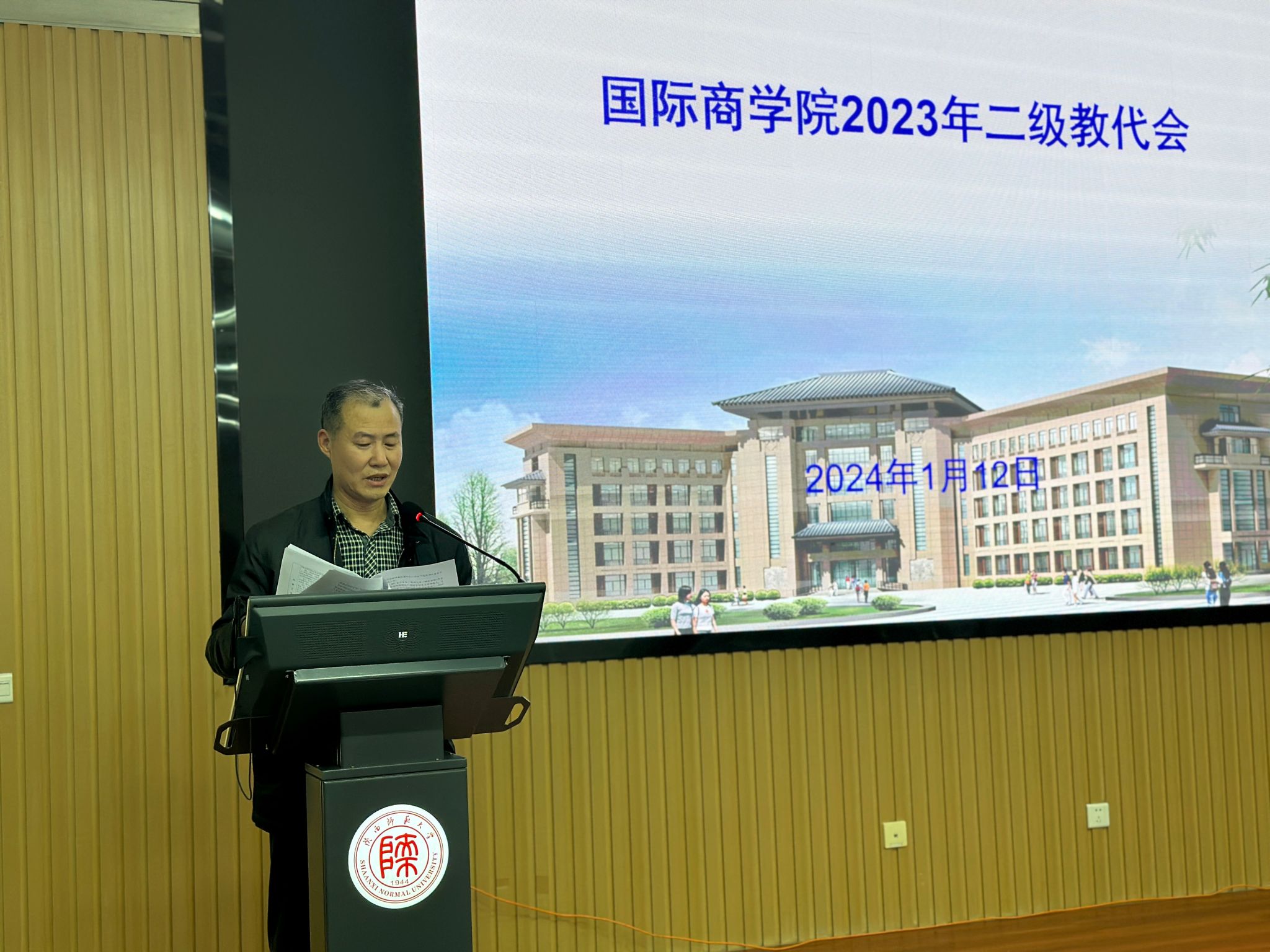 接着,学院工会主席袁海老师对2023年学院工会工作做出总结报告。杨静副院长报告了2023年度学院财务收支情况及年终奖酬分配方案。