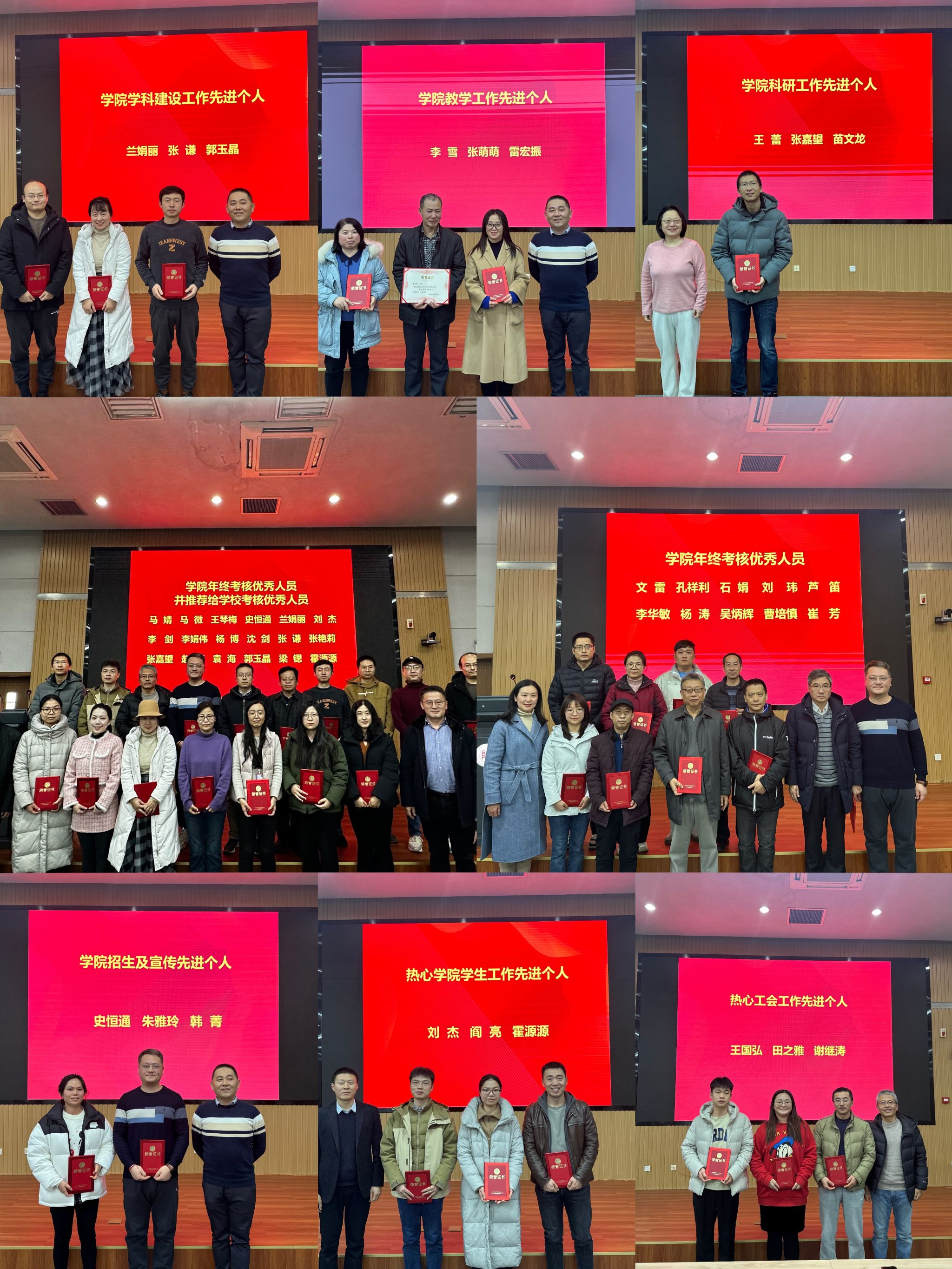 会议第二阶段,学院对2023年度在学校和学院考核优秀的教师以及在教学、科研、管理、学生工作、工会活动中涌现出的先进个人进行了表彰。