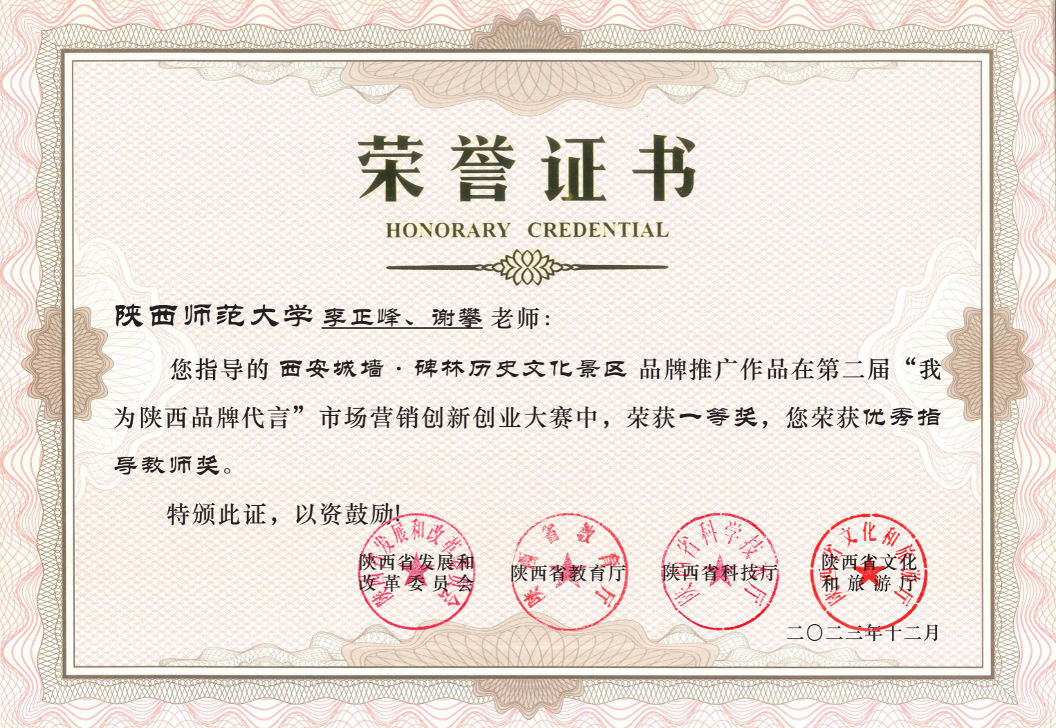图4 指导老师荣誉证书