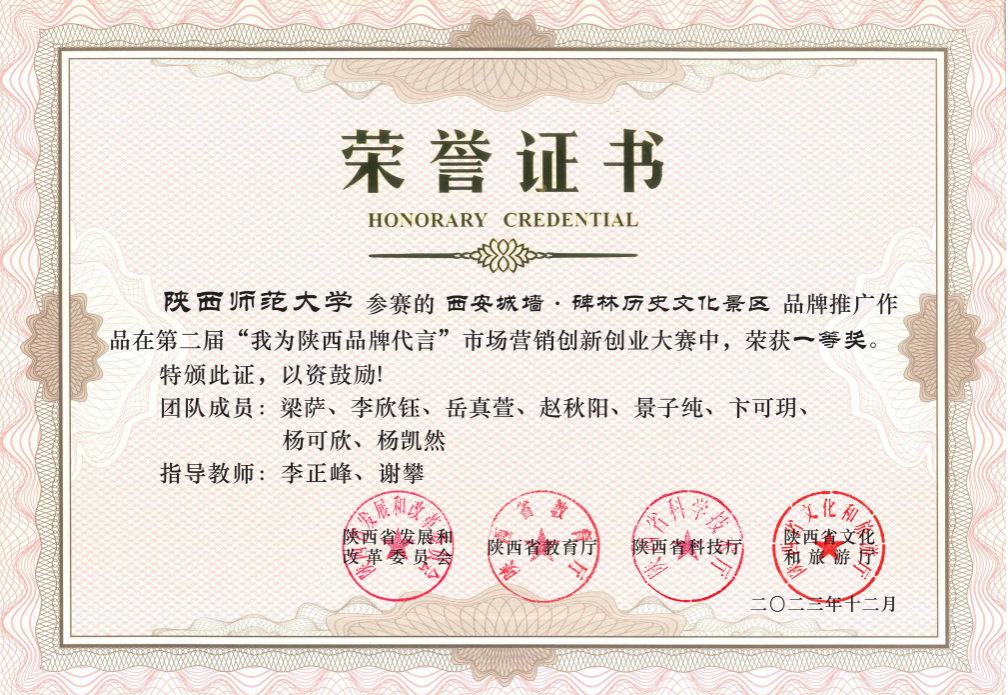 此次比赛历时4个月,完美官网参赛团队以“西安城墙·碑林历史文化景区”为题,从最初的品牌选题、策划思路、实地调研、作品拍摄、线上直播,到最后的现场答辩,李正峰老师和谢攀老师全程悉心指导,全体队员反复打磨作品。在“报告评审”环节,团队成员通过实地考察和线上问卷调研,创新思维,为景区设计了一体化程度较高且可行性较强的品牌策划方案;在“视频评审”环节,团队成员结合网络热梗,同时深耕景区文化内涵,制作了一系列推广视频,助力讲好品牌故事;在“直播评审”环节,团队成员通力合作,将景区丰富深厚的文化底蕴用喜闻乐见的形式进行线上传播,并着力宣传了团队创作的文创IP形象“碑宝”,打造了一场受众广泛、社会效益良好的直播;在“路演答辩”环节中,队员们自信展示、沉着作答、团结协作,充分展现了陕师大学子扎实的理论素养和良好的精神风貌。通过参加本次市场营销创新创业大赛,提高了学生的创新和实践能力,培养了学生的社会责任感、服务意识和团队协作精神。