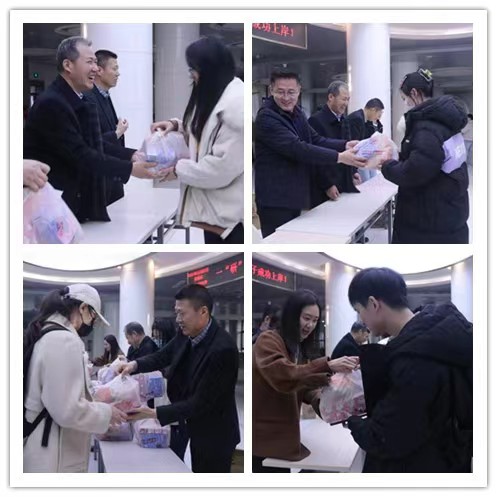 领导老师们代表学院将精心准备的考研大礼包发给每一位考研学子,暖心的问候和慰问品也让在场的同学们倍感鼓舞,纷纷表示在接下来的冲刺中会更加努力,以实际行动回报学院的关心。