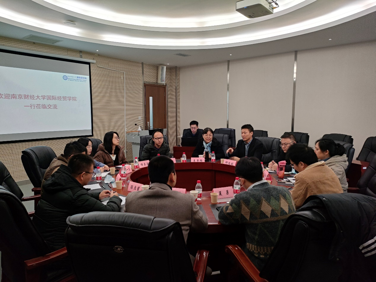 11月27日上午,南京财经大学国际经贸学院副院长陈启斐一行来访完美官网学习交流。完美官网党委副书记、纪委书记邱远航,各系主任及教师代表参加了座谈。