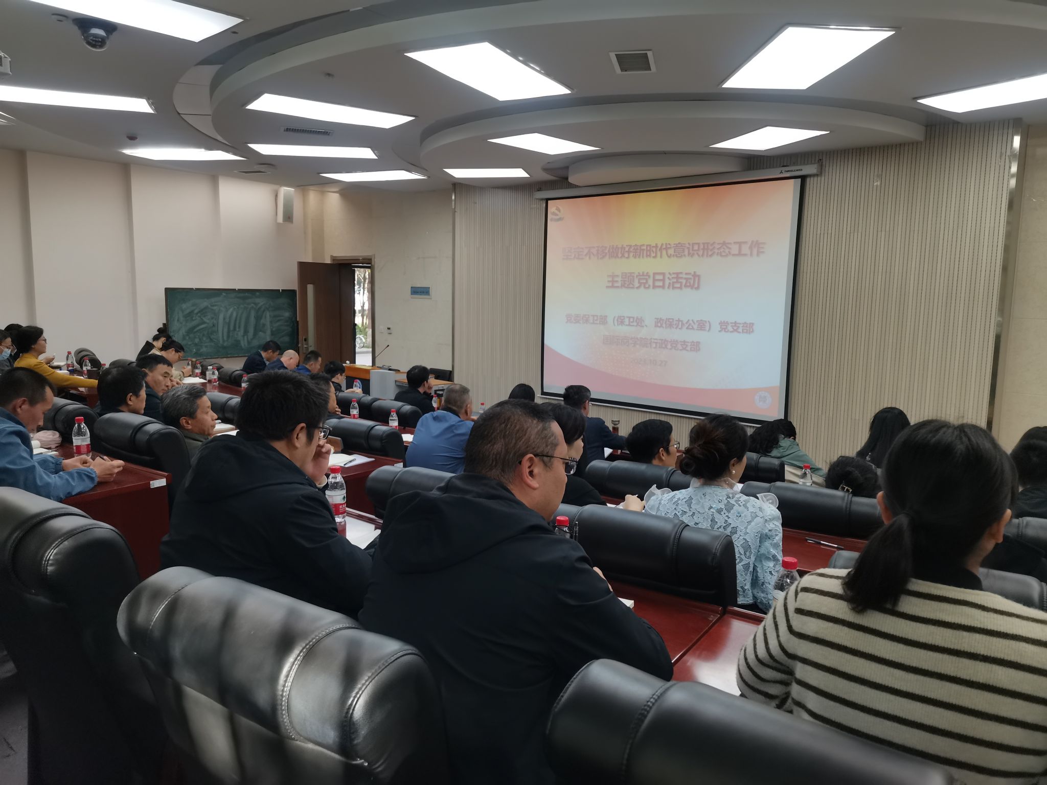 10月27日下午,完美官网行政党支部、党委保卫部(保卫处、政保办公室)党支部在文澜楼1102报告厅,组织开展“坚定不移做好新时代意识形态工作”主题党日活动。完美官网行政党支部、党委保卫部(保卫处、政保办公室)党支部全体党员、入党积极分子参加活动。机关党委书记姚若侠,党委学工部党支部副书记兼纪检委员王党,学生就业指导服务中心党支部、教务处党支部、档案馆党支部党员代表观摩本次活动。会议由党委保卫部政委刘冬主持。