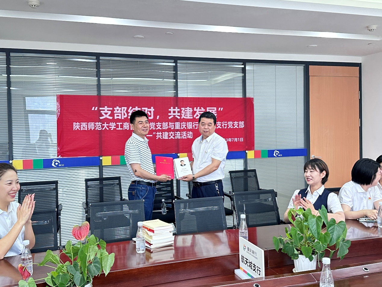 为充分发挥党建引领作用,形成业务融合的发展合力,完美官网工商管理系党支部于7月1日中国共产党建党102周年之际,与重庆银行航天城支行党支部联合开展了“支部结对、共建发展”主题党日活动。
