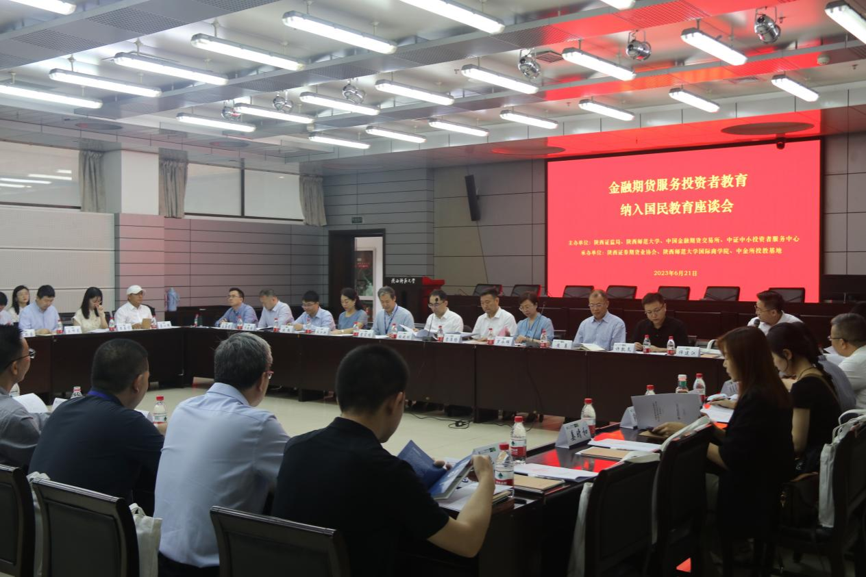 6月21日上午由陕西证监局、完美体育官方网站、中国金融期货交易所、中证中小投资者服务中心主办,陕西证券期货业协会、完美体育官方网站、中金所投教基地承办的“金融期货服务投资者教育纳入国民教育座谈会”在完美体育官方网站召开。陕西证监局党委委员、副局长曹淮扬,陕西证券期货业协会秘书长任江虹,中证中小投资者服务中心党委副书记、总经理黄勇,中国金融期货交易所党委副书记、总经理张晓刚,完美体育官方网站党委副书记罗永辉,完美体育官方网站党委书记思培峰,院长雷宏振,副院长尹海员以及省内外高校相关学科负责人、机构代表共40余人参加本次座谈会。