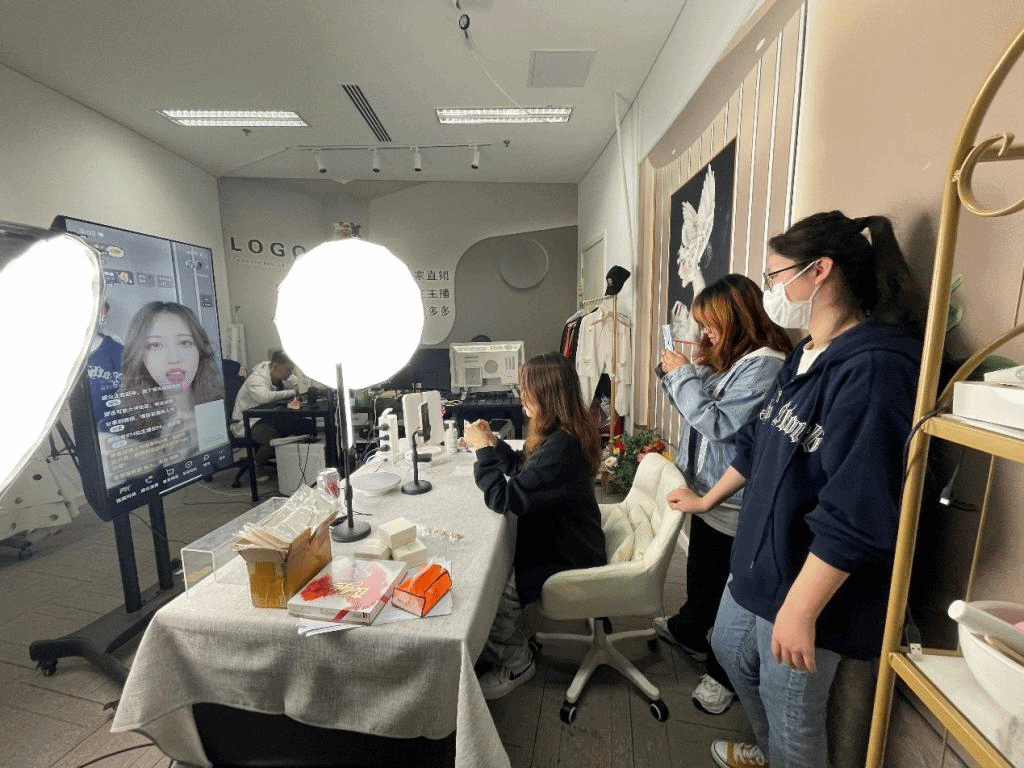 首先,师生们到达西安浐灞跨境电商产业园,了解了浐灞跨境电商的发展历程和现状,并参观了跨境电商从业者的工作环境。西安浐灞跨境电商直播基地TikTok认证讲师汪思思以跨境电商新风口、自主创业新机会为主题,结合身边典型案例和经验分享,介绍了电子商务领域相关知识和跨境电商发展的新方向、新机遇和新挑战。产业园的工作人员现带领大家了解了直播间的全貌并现场传授直播实践经验,部分同学亲身体验“网红直播”,身临其境感受直播带货的魅力。