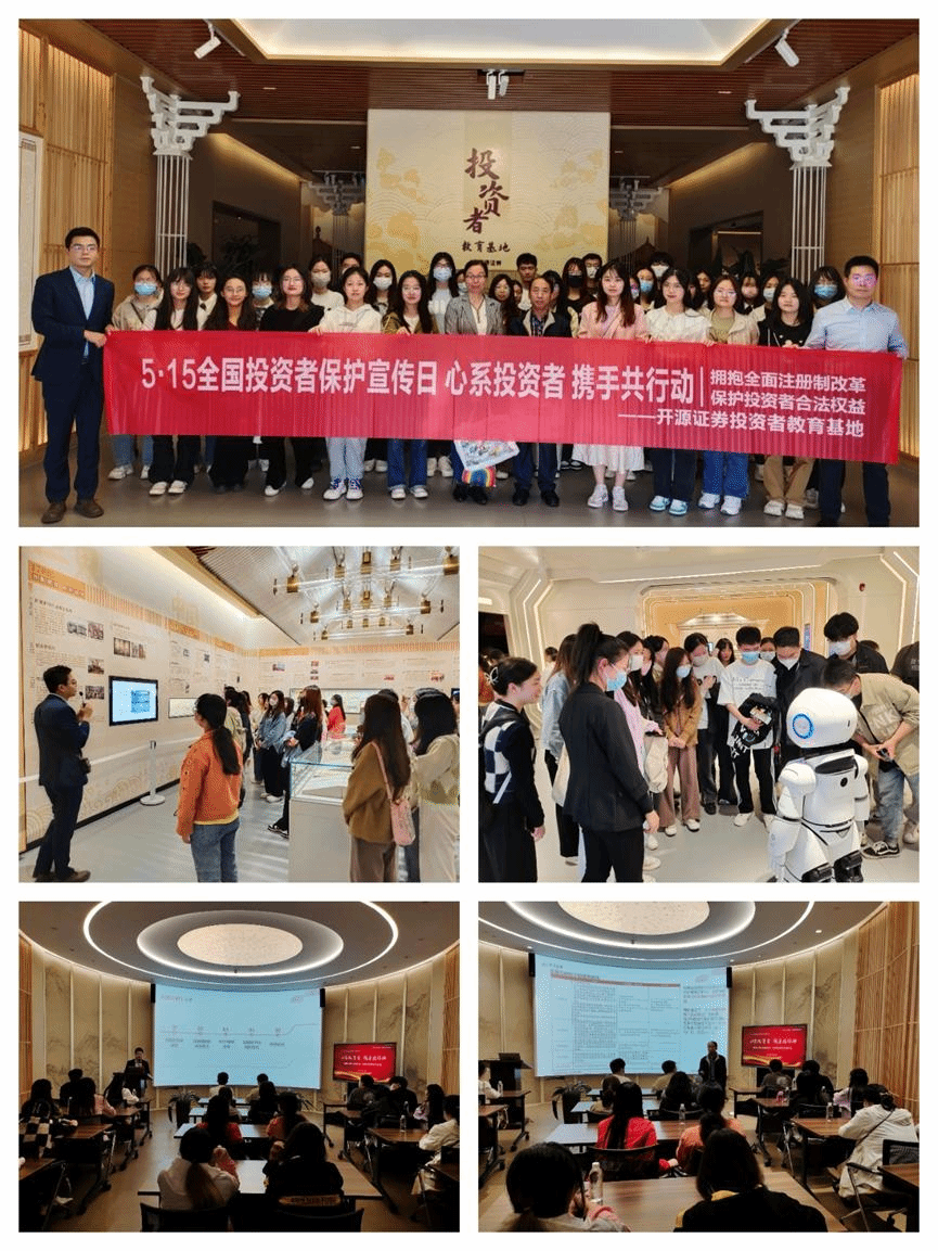 5月11日下午14:00,开源证券投教基地开展“5·15全国投资者保护宣传日”主题活动,完美体育官方网站金融学系曹培慎老师、李淑娟老师带领金融2001班全体同学前往参与。活动通过基地参观和金融知识课堂两大环节向同学和老师全面介绍资本市场发展历程及当前市场规则变化。