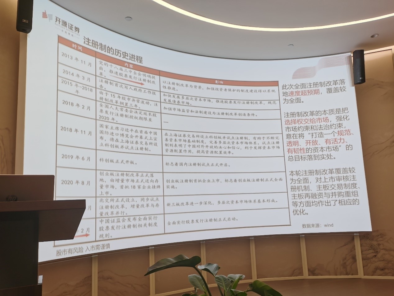 随后,开源证券的交易员作了题为“全面注册制,改革向未来”的金融知识课堂,讲述了注册制的历史进程、注册制影响及意义、BATJ海外上市案例分析、全面注册制下的规则变化及职业发展规划等内容,同时也提醒大家参与市场时要注意防范非法证券期货活动,切勿掉入投资陷阱。开源证券投教经理吕锦茹也分享了自己的职业经历,同学们从前辈的职业发展轨迹中了解到了专业知识素养、信息获取能力的重要性。精彩的课程加深了同学们对中国注册制改革的了解,提高了同学们的金融知识素养。
