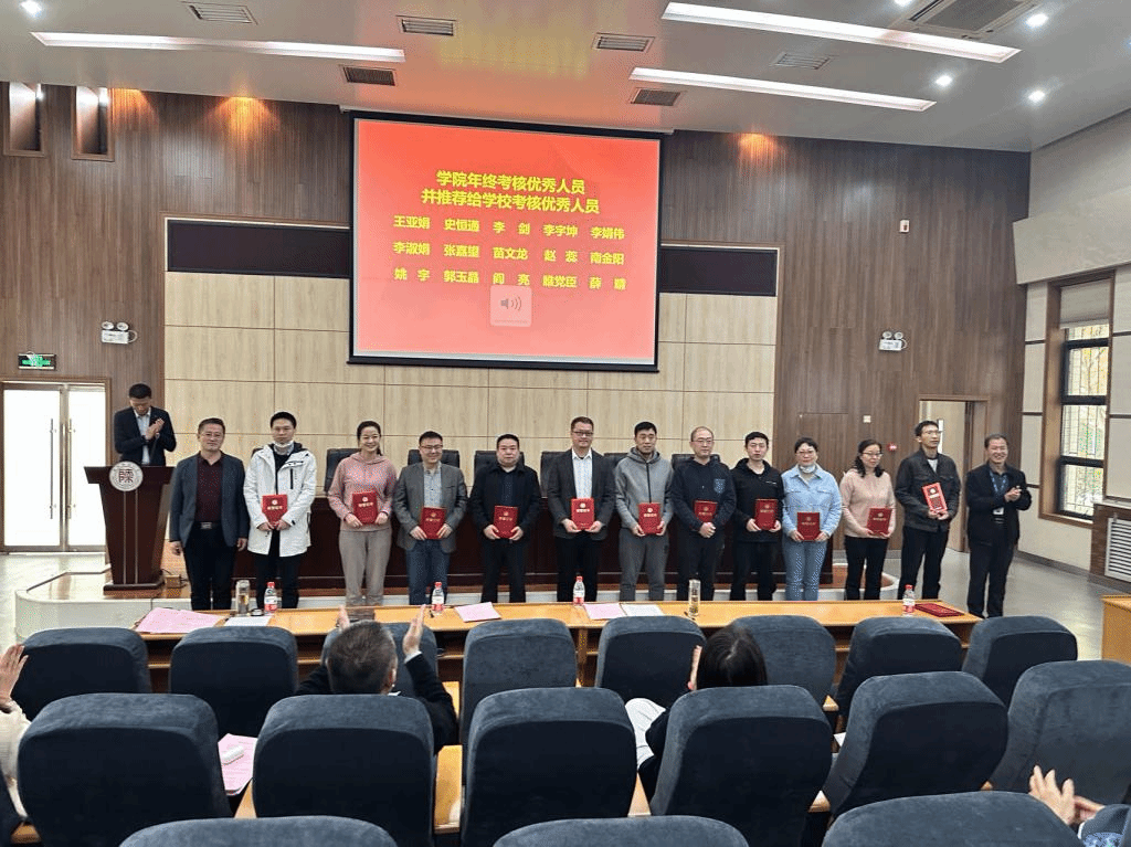 会议第三阶段,学院对2022年度在学校和学院考核优秀的教师以及在教学、科研、管理、学生工作、工会活动中涌现出的先进个人进行了表彰。