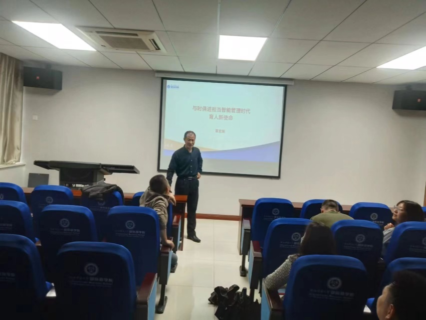 最后,雷院长强调作为新时代的高校教师,我们应该与时俱进,不断学习新的教育技术和方法,以适应智能管理时代育人的新要求、新使命。