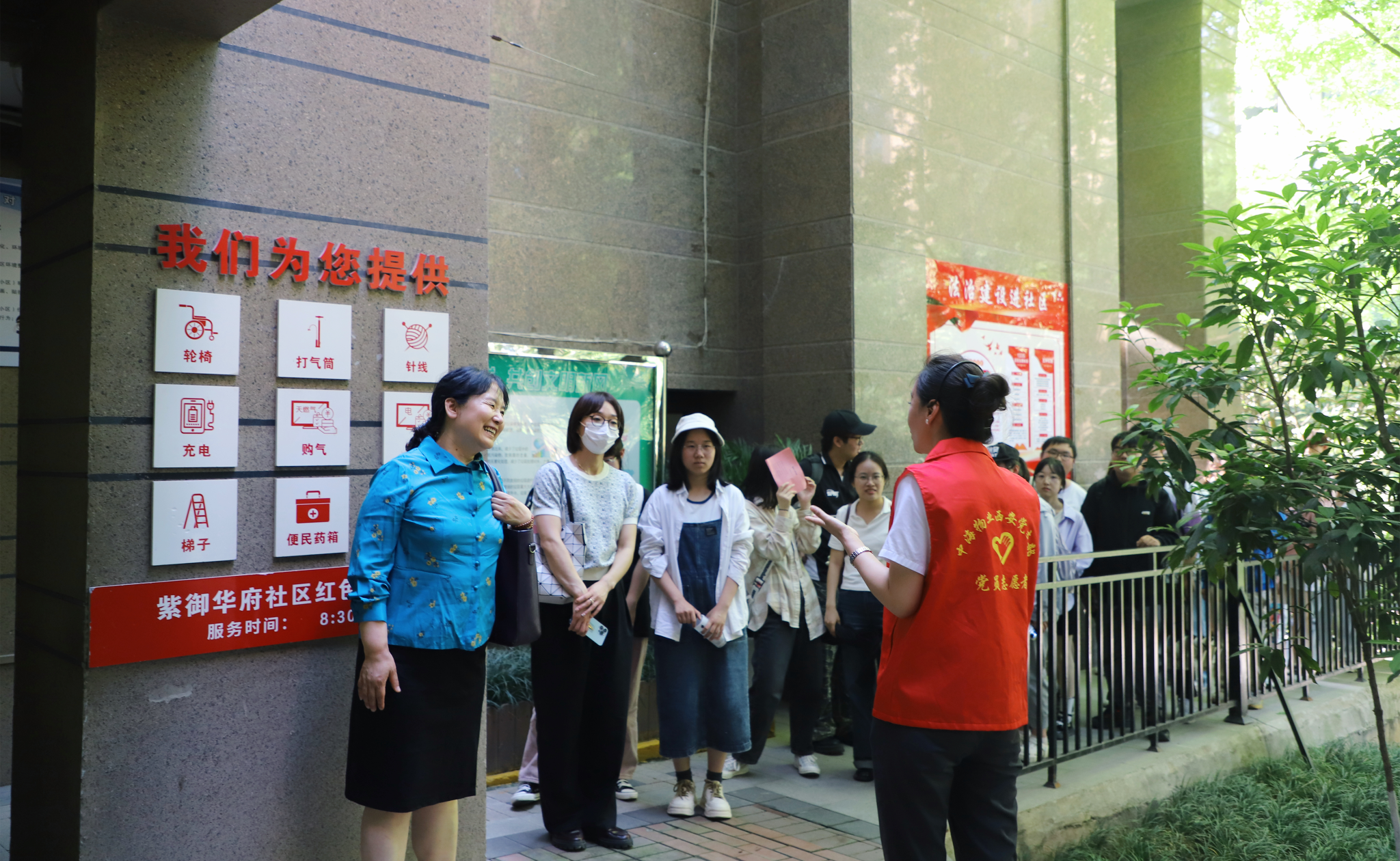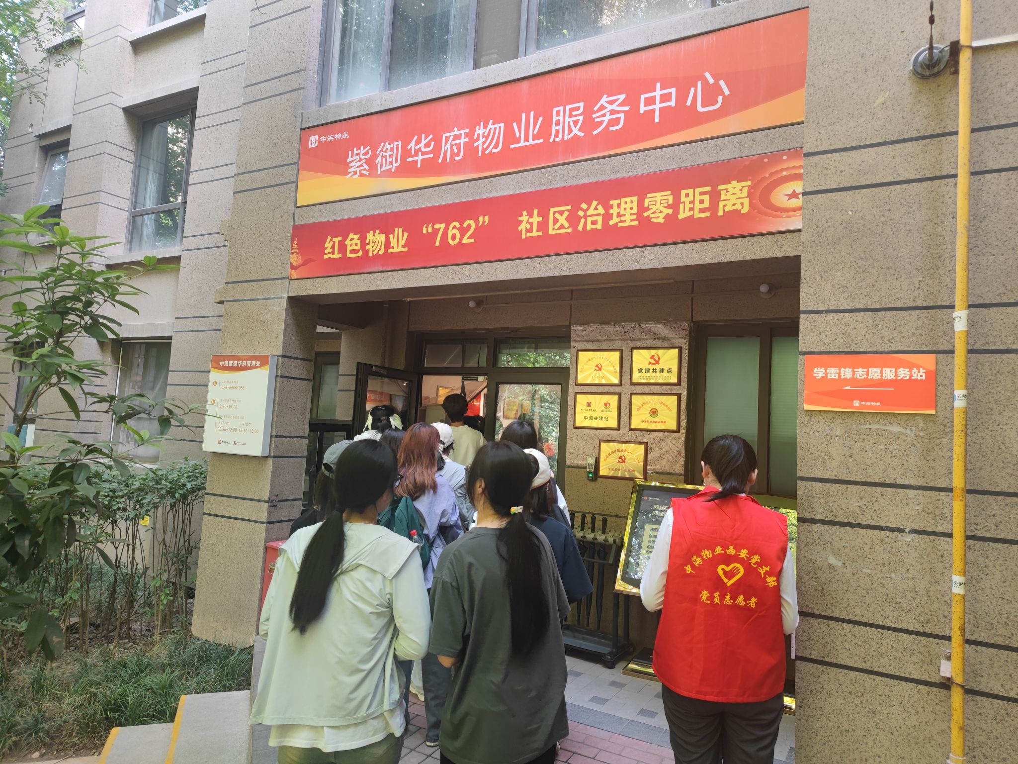 座谈会结束后,组织管理系党支部参观了中海紫御华府“红色物业762示范区”并联合开展“青年公益行”主题党日活动。组织管理系党支部阎亮、丁越兰、胡胜强、屈晓倩、张谦等出席座谈并参与共建活动。