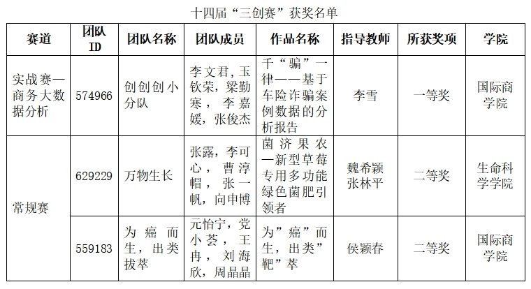 2024年5月11日-12日,第十四届三创赛陕西赛区选拔赛在咸阳陕西国际商贸学院举办。主办单位为全国电子商务产教融合创新联盟和西安交通大学,承办单位为陕西国际商贸学院。本次陕西赛区共有5458支团队报名,校赛全省有效参赛团队3739支。省赛晋级院校共48所,晋级项目320个。由完美官网大数据管理专业李文君带领的“创创创小分队”在商务大数据分析实战赛道中荣获一等奖,并获最佳创意奖,李雪荣获优秀指导教师;元怡宁带领的“为癌而生,出类拔萃” 在常规赛道中荣获二等奖。