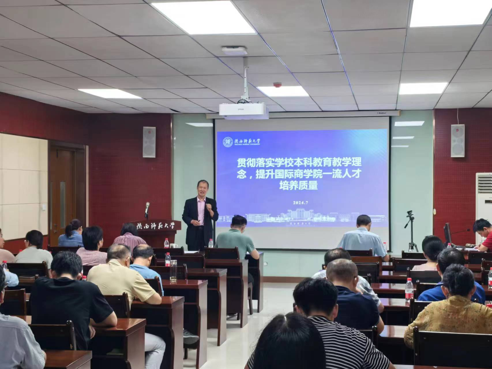 雷宏振院长在会上作了主题为“贯彻落实学校本科教育教学理念,提升完美体育官方网站一流人才培养质量”的报告。他从“创造经济与管理新知,培养具有社会责任感的优秀商业人才”的学院使命讲到了本科人才培养理念及目标,从“立足中西部,成为国内一流、国际知名的商学院”的学院愿景讲到了大学文化,从学院理念、学院价值观及学院院训讲到了质量保障体系,并介绍了学校的本科人才培养模式。