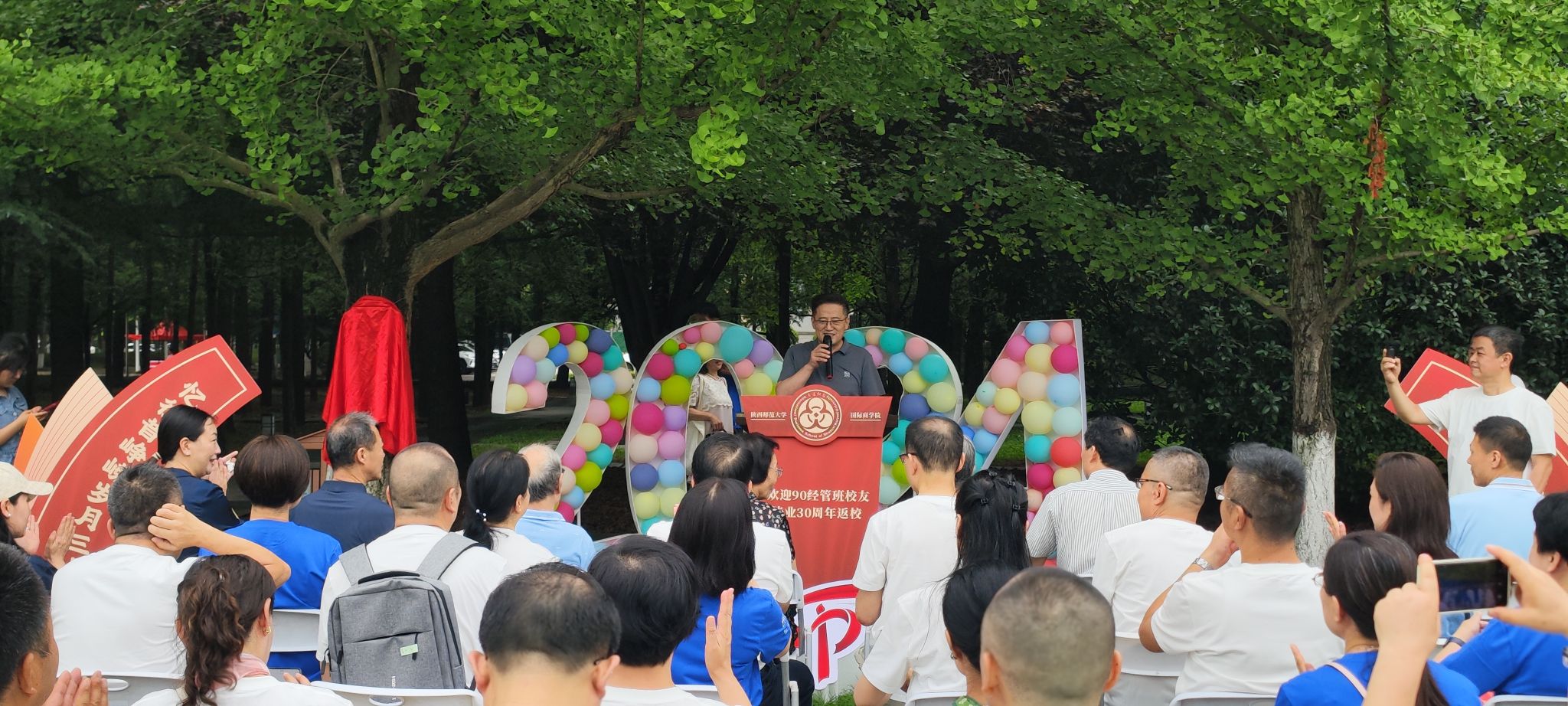 时光荏苒,情谊依旧。7月13日上午,完美官网1994届校友毕业30周年返校联谊活动在长安校区校友林前举行。时任党总支副书记马云霞,时任任课教师李子猷、许军,时任辅导员张俊胜,学校校友总会办公室主任、教育基金会秘书处秘书长刘洪超,学院院长雷宏振,党委书记思培峰,党委副书记、纪委书记邱远航,副院长杨静、史恒通,经济学系党支部书记朱雅玲,90级经管班校友及部分师生代表参加了活动。活动由思培峰主持。