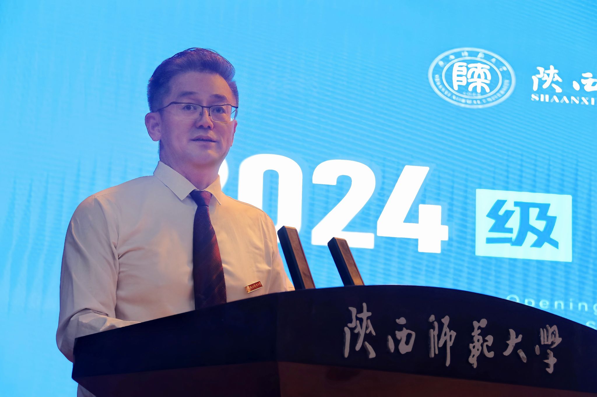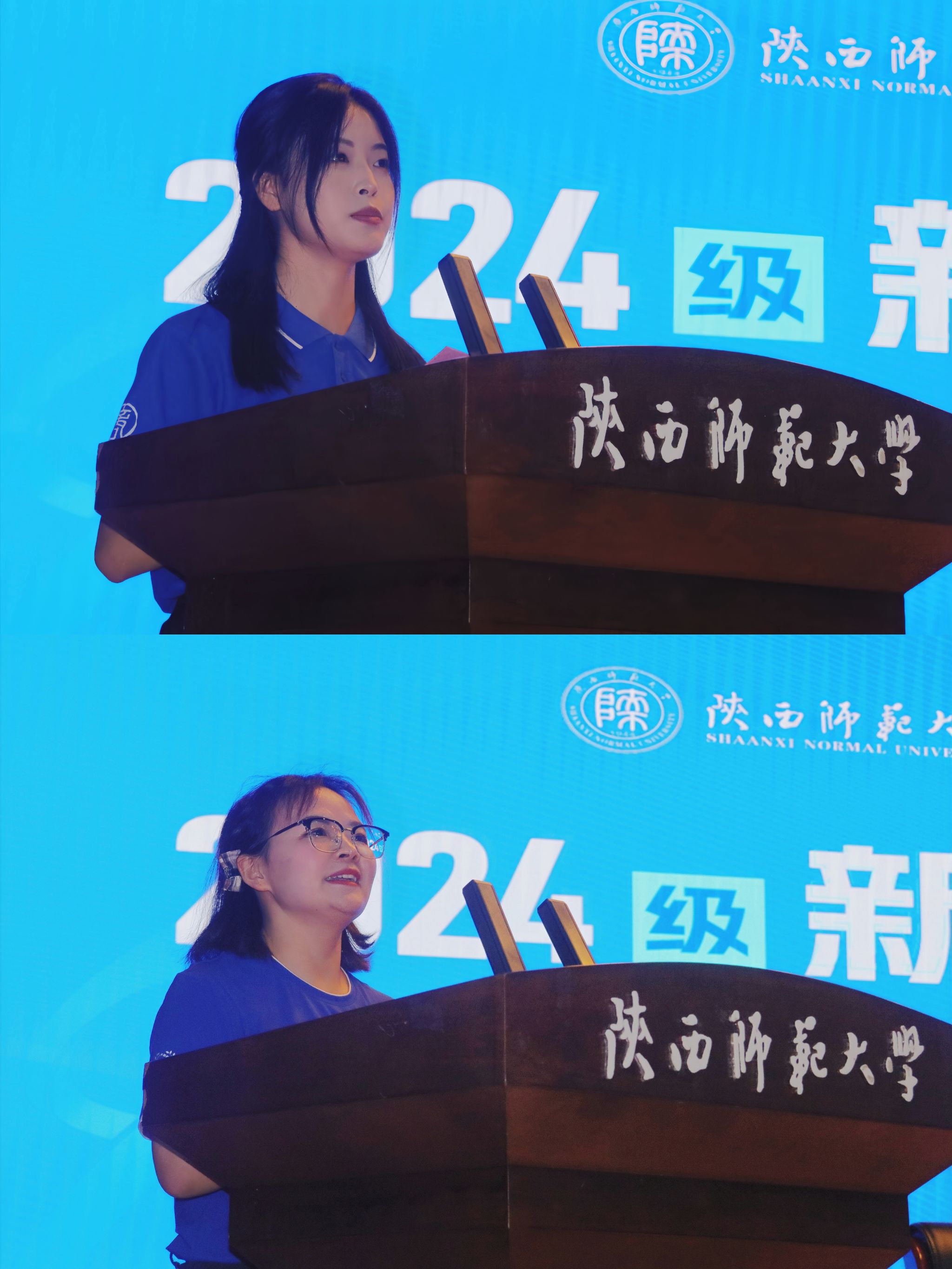 首先,教师代表王琴梅教授致辞。她对2024级新生们的到来表示热烈欢迎,同时对本科生和研究生阶段的学习生与活提出了建议与嘱咐。她期望同学们能够认真学习,投身中国式现代化建设,时刻将爱国铭记于心,为祖国的繁荣发展贡献自己的力量。