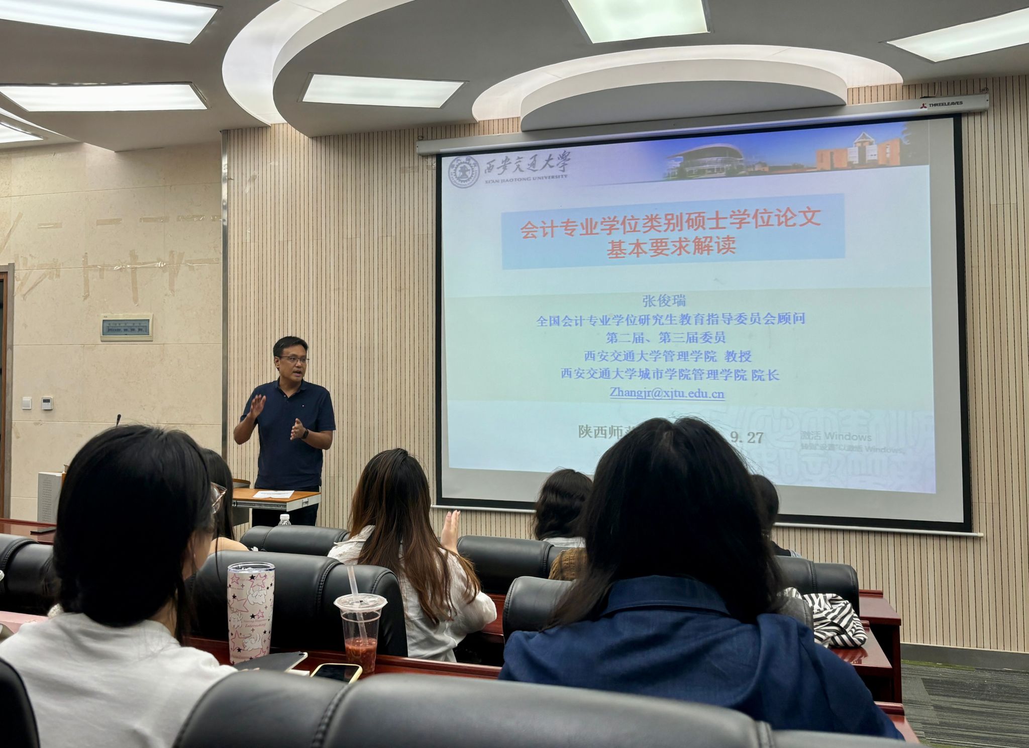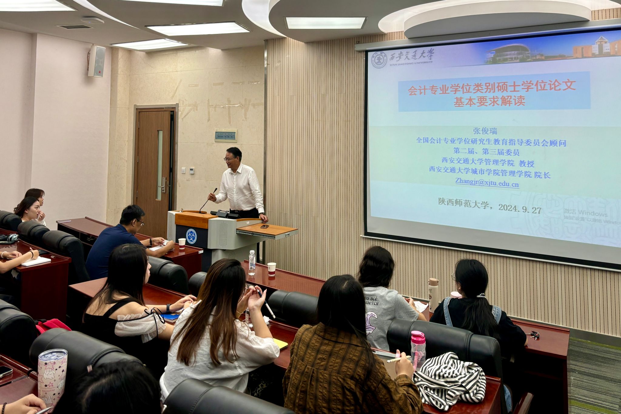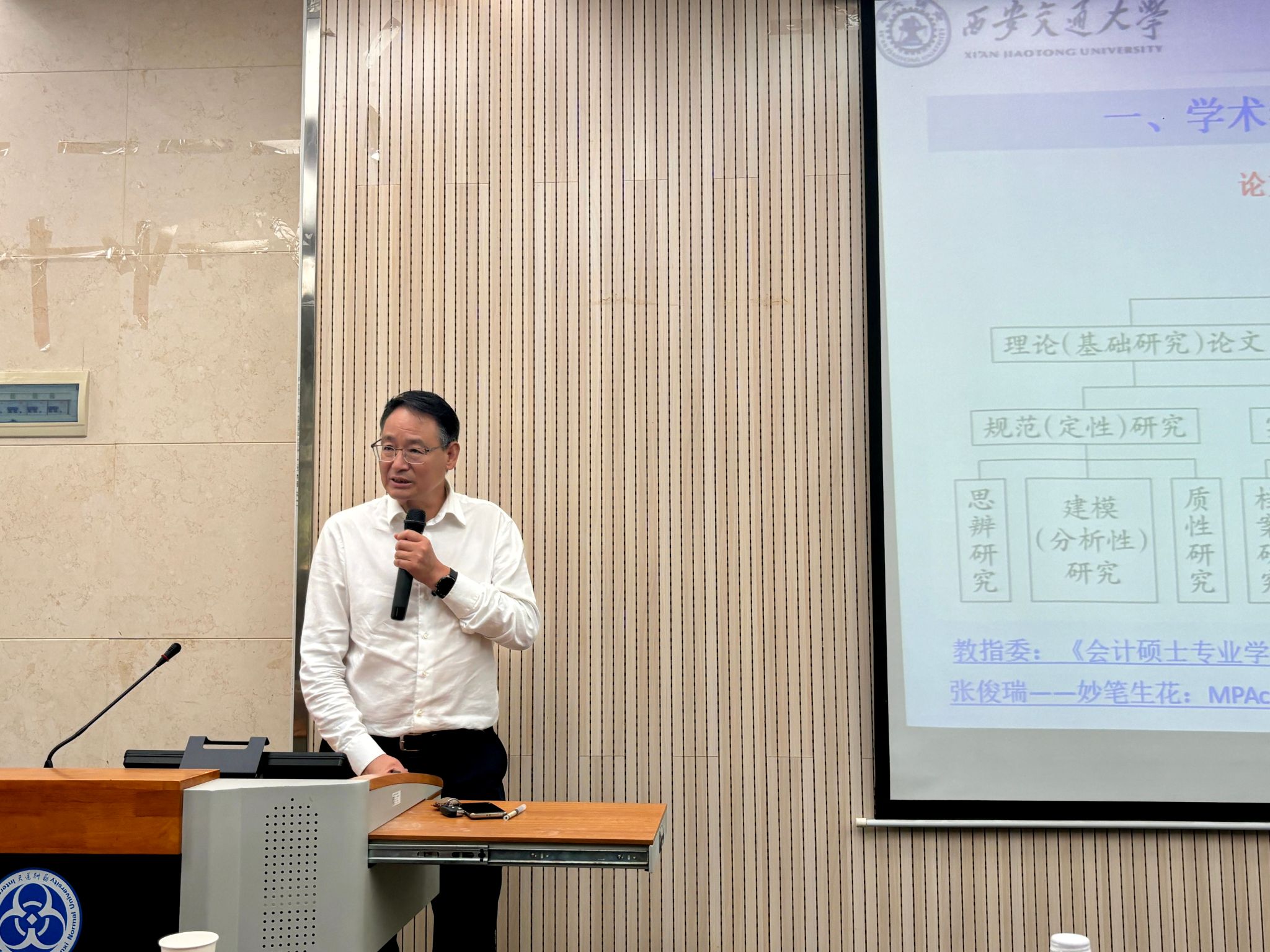 为了提高研究生新生对学位论文撰写规范的理解与掌握,推动会计专业学位研究生教育的高质量发展,9月27日上午,完美官网在长安校区文澜楼1101报告厅举办了2024级研究生新生“会计专业学位类别硕士学位论文基本要求解读”专题讲座。西安交通大学管理学院教授张俊瑞出席了活动并作了主题分享。讲座由学院MBA、MPAcc教育中心常务副主任徐国东主持。