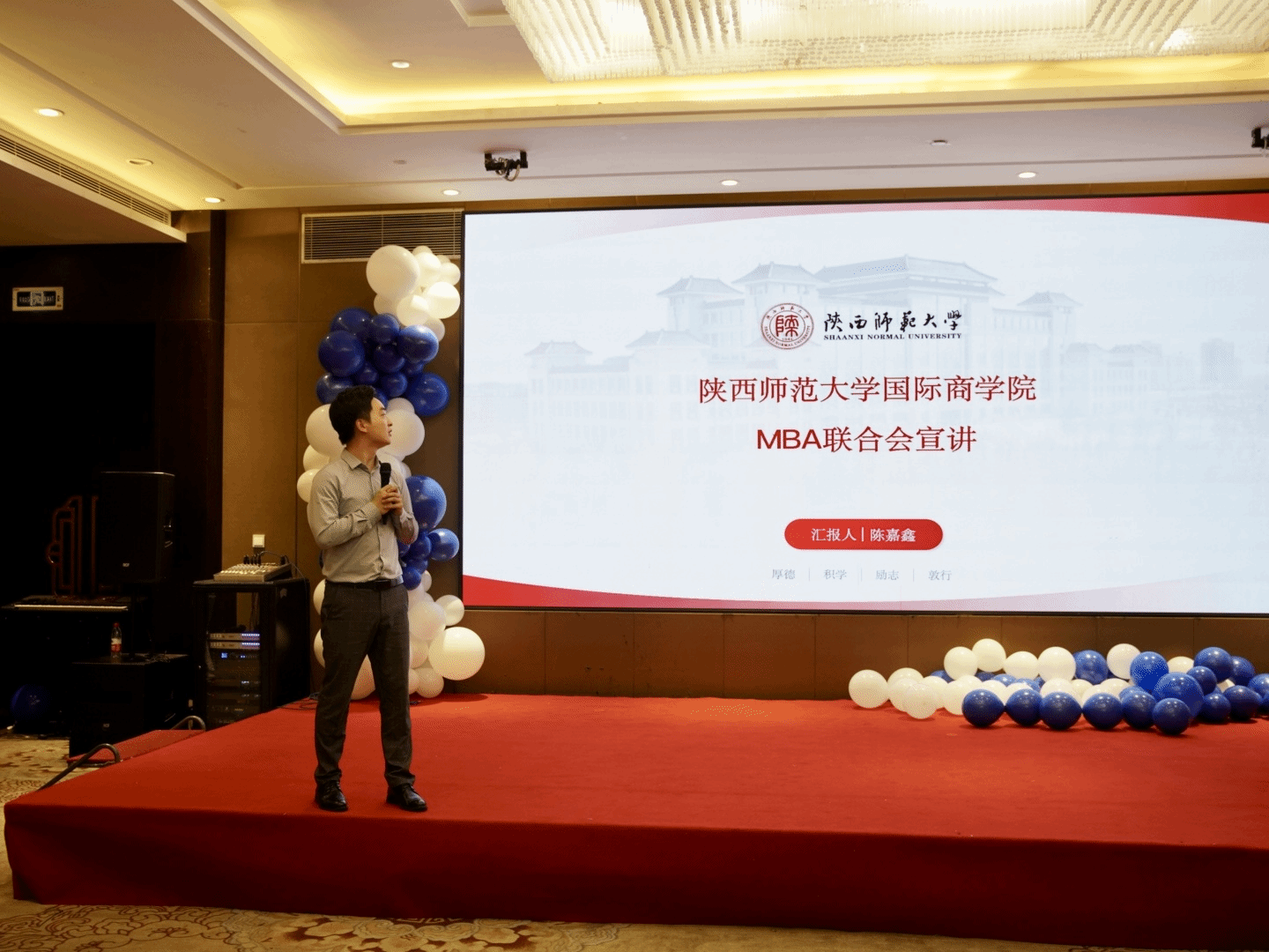 10月6日晚,完美官网首届MBA迎新联谊晚会在吉源国际酒店隆重举行。学院党委书记思培峰,党委副书记、纪委书记邱远航,教师代表姚宇,MBA、MPAcc教育中心常务副主任徐国东,中心秘书宋宁,辅导员杨涛,历届MBA联合会成员韩如豪、马召出席了晚会。晚会由MBA教育中心指导,联合会主办,2024级MBA新生杨明珠主持。
