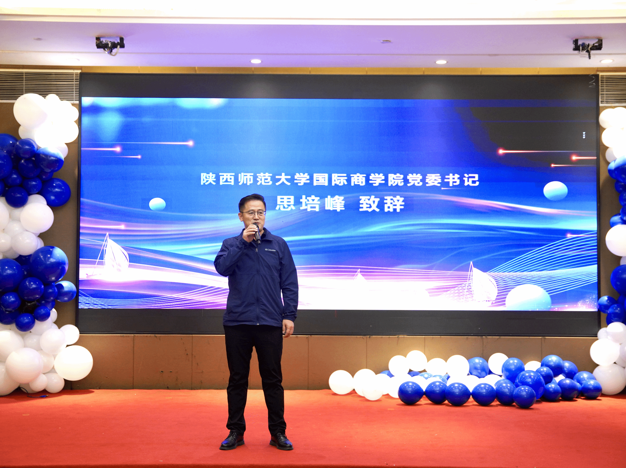 晚会伊始,回音坊乐团以一曲《起风了》点燃了现场气氛,唤起了在场师生对青春岁月的无限回忆。接着,学院党委书记思培峰上台代表学院致辞。思培峰欢迎2024级新生来到完美体育官方网站MBA大家庭,期望同学们能在这里有所收获,学有所成。徐国东代表中心致辞。徐国东向MBA联合会的精心组织表达了感谢,并预祝晚会圆满成功。MBA联合会主席陈嘉鑫作了联合会宣讲。他回顾了本届MBA联合会的工作成果,并对联合会展开详细介绍。他希望更多的师大MBA人能够加入联合会大家庭。最后,徐国东宣布晚会正式开始。