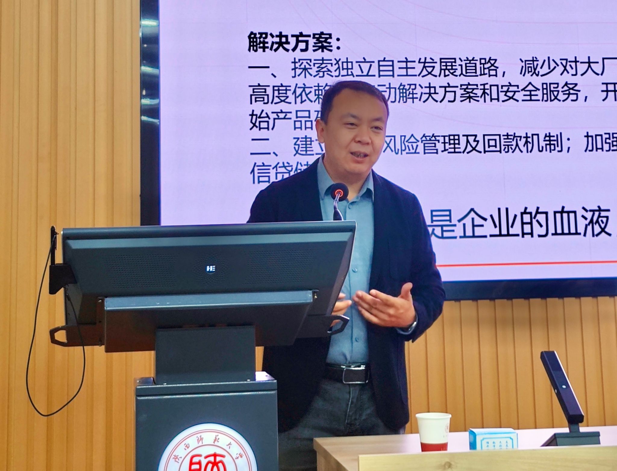 讲座最后,郭义与现场师生展开了互动交流,回答了同学们关于企业经营管理等方面的提问。