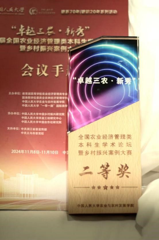 2024年11月9日,“卓越三农·新秀”第二届全国农业经济管理类本科生学术论坛暨乡村振兴案例大赛在浙江义乌市委党校成功举办。经过激烈的角逐,完美官网经济学专业2022级本科生张博超在本届大赛中表现出色,荣获二等奖。