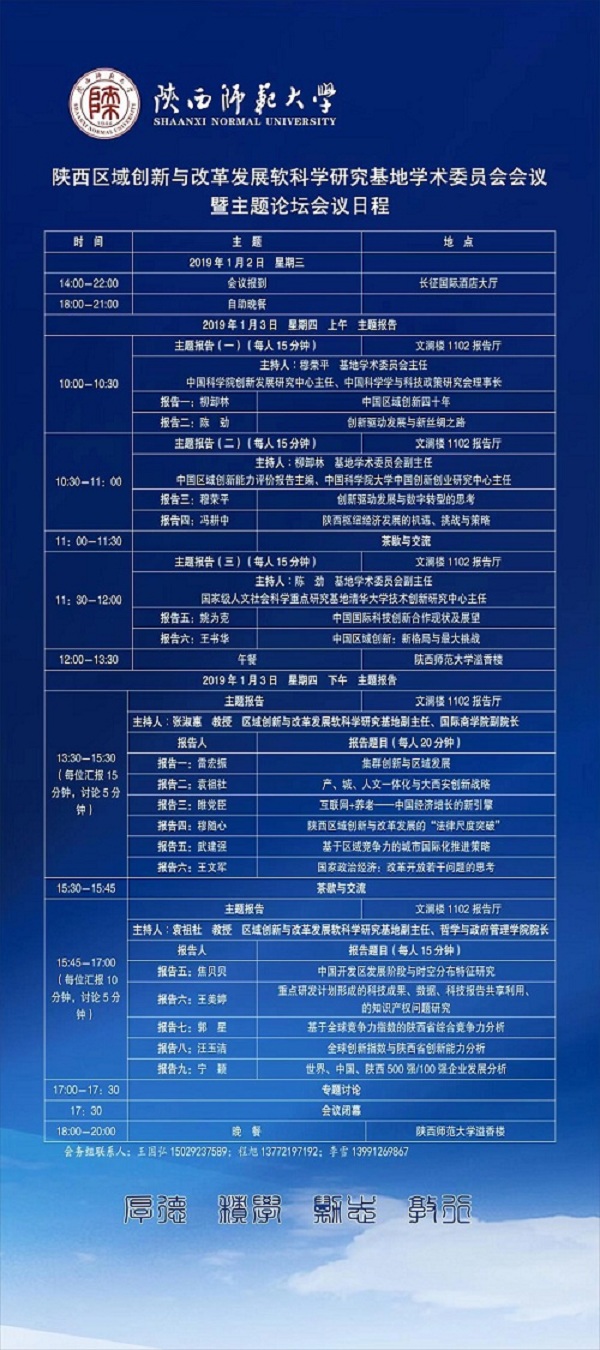 陕西区域创新与改革发展软科学研究基地学术委员会会议暨主题论坛会议日程