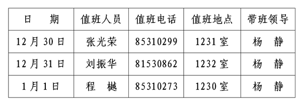 注意:值班人员务必坚守岗位,负责处理学院的日常事务。遇有重大事件时应立即按程序规定,向学院值班领导和学校总值班室值班人员报告,按指示处理有关事宜。