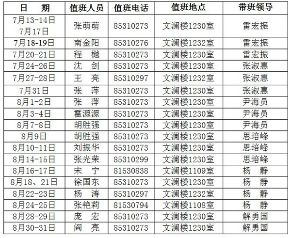温馨提示:值班人员务必坚守岗位,负责处理学院的日常事务,每天如实填写值班日志。在自己值班期间至少去收发室取信件一次,及时给植物浇水,下班仔细检查电源。遇重大事件立即按规定向学院值班领导和学校总值班室值班人员报告,按指示处理。值班结束请联系下一位值班人员告知钥匙交接事宜。