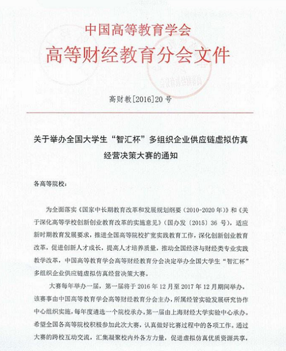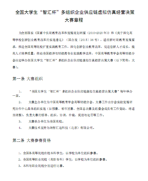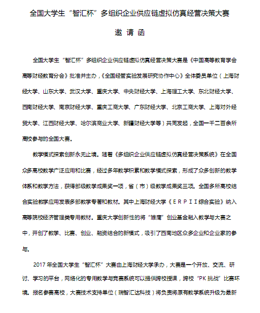 全国大学生“智汇杯”多组织企业供应链虚拟仿真经营决策大赛邀请函