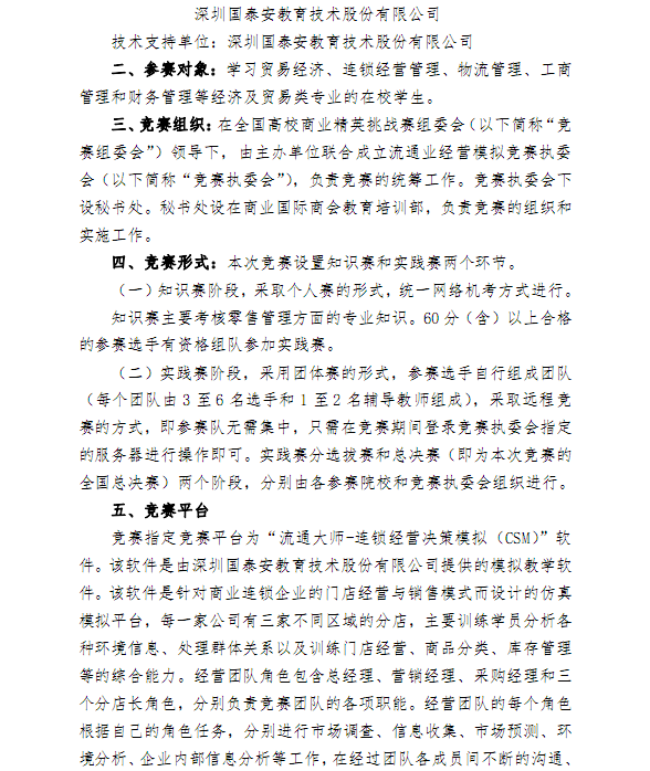 关于举办2017年全国高校商业精英挑战赛“国泰安杯”流通业经营模拟竞赛的函